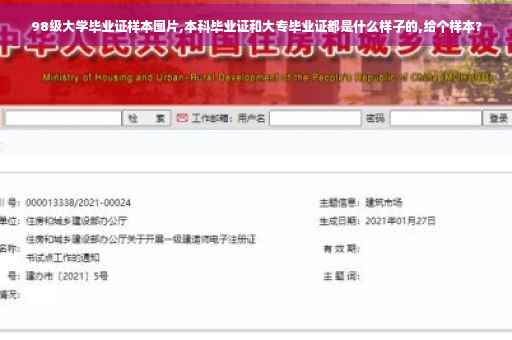 大家好,关于98级大学毕业证样本图的问题,于是小编就整理了2个相关介绍98级大学毕业证样本图的解答,让我们一起看看吧。