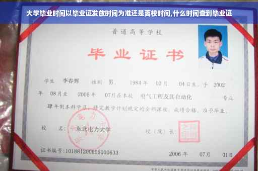 以毕业证发放时间为准。 毕业证是学生通过系统的学习,修完学校所安排的全部课程并成绩合格,达到毕业条件,由办学单位颁发的用于证明学习经历的书面凭证。