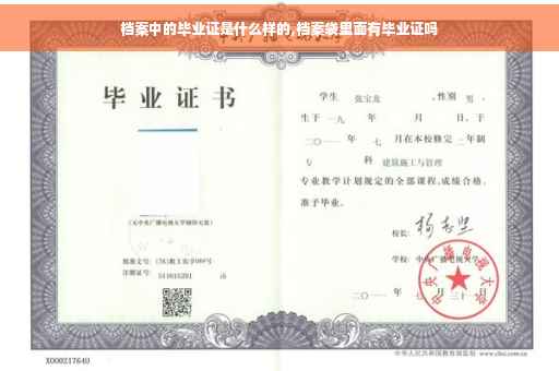 档案里是没有毕业证。毕业证由本人单独拿(持有)。档案里是装了你从小到大的教育经历以及成绩报告和相关人生重要经历的记录(比如受奖、重大违法行为的记载)等