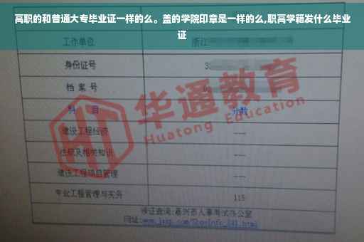 不一样,高职高专与大专毕业证是不一样的。高等职业学院和高等专科学校都是我国高等教育层次上的教育机构,同属于大专。大专是高等教育最低的一个档次。高职高专的学校形式主