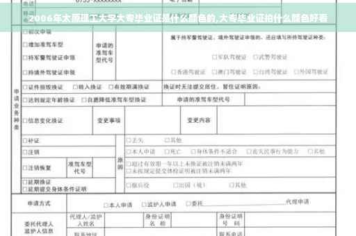 根据我所了解到的信息,2006年太原理工大学大专毕业证应该是红色的。毕业证上面会印有学校的名称、校徽、专业、毕业生的个人信息等。值得注意的是,毕业证是一份非常重要的证件,一定要妥善保管好,以免丢失或损坏。关于这个问题的其他观点或角度,可能包括毕业证对于求职和升学的重要性、毕业证代表着学生的学业成就等等。