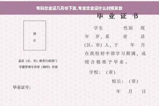 大专毕业证一般在每年6月底发放。各所学校大专毕业证发放时间可能会不一样,但差别不会很大。每年毕业时间是6月30号,毕业6月份是发放毕业证时间,专科在6月和7月初这一段时间都有给符合标准学生发放毕业证;一般学校官网或者辅导员会有毕业证发放须知、自考专科人员,会在5月申请,符合条件,在6月底发放毕…… 每年毕业时间是6月30号,毕业6月份是发放毕业证时间,专科在6月和7月初这一段时间都有给符合标准学生发放毕业证;一般学校官网或者辅导员会有毕业证发放须知;自考专科人员,会在5月申请,符合条件,在6月底发放毕业证书。 例如湖北自考人员: 在自考网站申请、查询、办理。 一般是6月20号左右以后,最晚七月份.