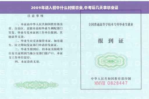 在九年义务教育阶段,孩子一旦入学之后,录入成功就有相应的学籍,在这期间任何老师和家长都有义务和责任让孩子完成学业,而且原则上孩子是否允许留级或者跳级的。2009年进入初中学习,三年之后应该是2012年的7月,孩子就就能拿到初中毕业证。