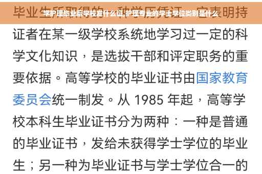 学护理专业,如果本科就发毕业证和学位证、如果大专或中专,就只发毕业证。想做护士,还需要考出来执业护士资格证,才能到医院去做护士。护理学分医学学士和理学学士两种。