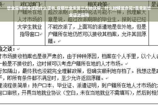 2、毕业生到用人单位报到后,三方协议自行终止,此时用人单位会与其签订一份正式的劳动合同,其中约定了劳动者在单位的试用期限、服务期限、工资待遇及其它各项福利等等事宜,合同签订之后,双方即正式确定了劳动关系。扩展资料:1、三方协议不同于劳动合同:所以三方协议不适用《劳动合同法》的相关规定,而是适用《民法通则》或《合同法》的相关规定。2、三方协议可以约定违约金、也可以不约定,如果约定了违约金,协议当事人应当遵守,你违约时应当负违约责任。