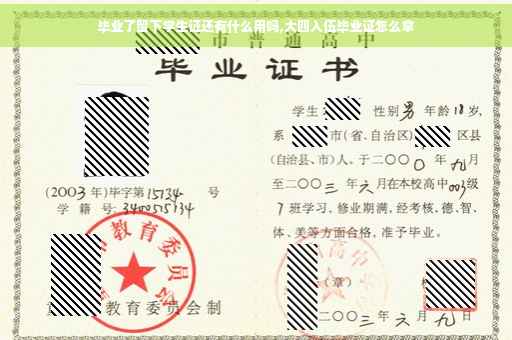 毕业了留下学生证没有其他用处了,但是可以留做纪念,是对美好青春的记忆。青春一去不返,当你正值毕毕业寻梦的年纪,或许对毕业证没有什么感觉,主要精力用在事业的努力奋斗之中,随着岁月的流逝,当青春不在,两鬓斑白之际,看到毕业证就会打开记忆的闸门,对青春有着无限美好的回忆,同学情,师生情,让人感怀!