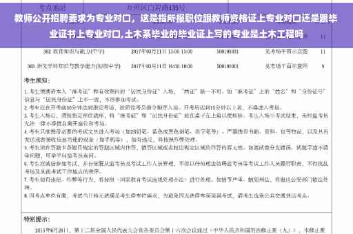 教师招聘的专业对口是指要与大学所学专业亦即毕业证上面的专业对口或者相近,这些都会在公告中说明; 已有教师资格证的考生也可以报考其他学科的教师资格证,只要获得教师资格证,可以报考公办学校; 有关教师资格证的相关政策会在当地教育局官网发布,考生也可以现场咨询。
