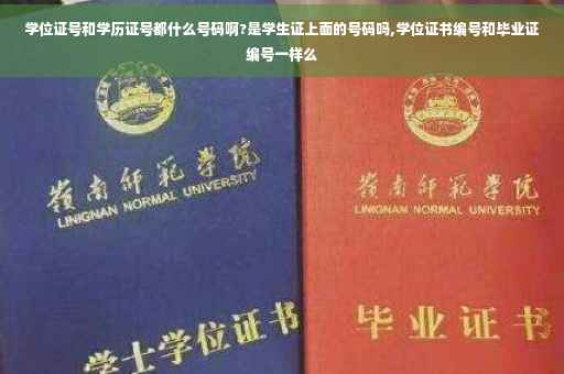学历证书编号和学位证书编号不一样。 现在的毕业证和学位证后面几位数字都是电脑随机产生的编码,毕业证是毕业证编码,学位证是学位证编码,二者肯定不一样的,后面的顺序也没有什么规律可循。 学历证书是学制系统内实施学历教育的学校或者其他教育机构,对完成了学制系统内一定教育阶段的学习任务的受教育者所颁发的文凭。