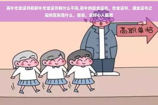肄业证书和以上两者的区别在于肄业证是在没有能够在毕业前修满规定学分(即有科目不及格,无法拿到足够的学分)的情况下颁发的,而结业和毕业均要求修满相应学分。高中毕业证上面的章和初中毕业证上面的章是不一样的 。高中毕业证上面的章,是由高中毕业学校的老师主管所盖的章 ,而初中毕业证上面的章是由初中学校所盖的 ,两个张分别是有两个学校来 盖的章 ,他们一定是不一样的 ,除非你上的学校是一个初中和高中在一起的学校