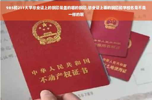 985和211大学毕业证上的钢印毕业证书的公章都是盖所毕业学校的公章,无论是985还是211高校,均是如此。毕业证书是证明一个学生学历层次的,客观的说,不同学校的毕业证书,只要是层次相同,则证明的学历层次也相同。比如,不同学校的本科毕业证书都是证明学生是本科毕业生。