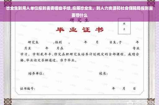 在报到时,应持报到证、毕业证、学位证、照片(一般3-6张)、档案、各种奖励证书原件、各类证书原件、户口(如果迁移户口,还要携带户口迁移证;如果没迁户口,就带家里的户口簿)、就业协议书、身份证、报到通知等相关证明,在单位规定的时间内前往报到。