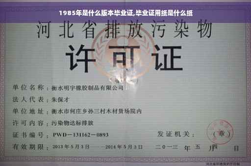 1985年毕业证是硬皮红本:外面是金字某某学校毕业证书,内面只有一张纸,一边纸上内容是毕业证书,相片(黑白1寸或2寸,盖铁章),证书登记第(六位数)号,另一边是某同学某省某县人,于某年某月入本校某专业学习几年,按教学计刈完成全部学业,成绩及格,准予毕业,此证,下面是学校公章和校长章及日期。当年证书现在是无法网上查的。