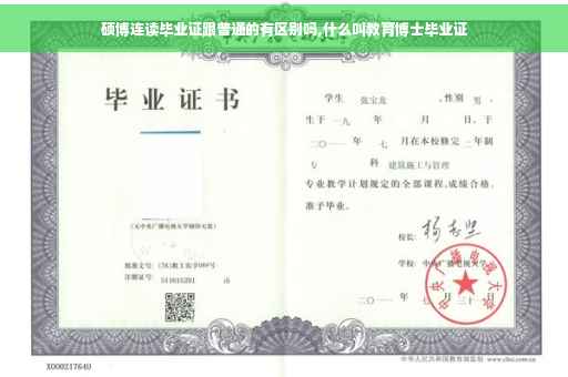 硕博连读毕业证和普通的没有区别。对于硕博连读的学生来说没有硕士学位证和硕士毕业证书,只发给博士学位证和博士毕业证书,但硕博连读也有风险,若博士毕不了业,硕士证书也没有,所以硕博连读就得努力学习,正常毕业,硕博连读的博士毕业证和学位证与普通的博士毕业证是一样的,没有任何区别。