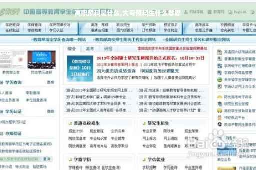 大专预科生是指在国家指定的普通高校或民族学校中,对于达到学校预科班要求的学生,可以降低一定的录取分数标准来录取他们。