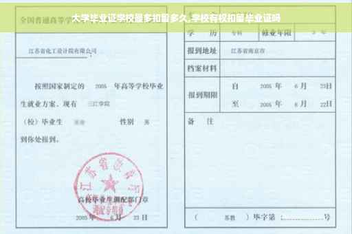 根据学校规定和法律法规,学校在特定情况下有权扣留毕业证。例如,如果学生存在违纪行为或未完成学业要求,学校可以暂时扣留毕业证,直到问题解决或学生满足相关要求。