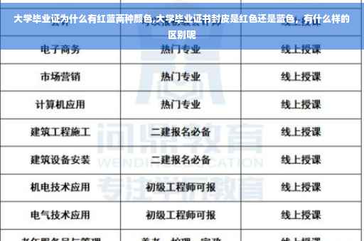 原来是红色的,从2005届起就改用蓝色了,并且和内心完全分离;毕业证内心也增强了防伪技术(主要是防止制假)。2000年以后的大学毕业证书都可以在中国高等学校学生信息网上查询真伪,封面和内芯完全分离,用什么颜色的封面对毕业证真假没有影响,关键是内芯,只要内芯是真的,在上述网站上查得到就行。封面都是中华人民共和国教育部监制的,并印有“中华人民共和国教育部监制”字样。