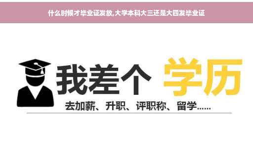 是大四发毕业证。按照目前的规定,大学本科学制一般来说是四年以上,个别专业比如临床医学但专业需要更长时间的学制。既然是四年的学制,学校肯定是要把四年的时间排满,只有学完学校安排的课程,并考试考核通过,才会发放毕业证书,即使是大三学完全部课程也是不可以发放毕业证书的。