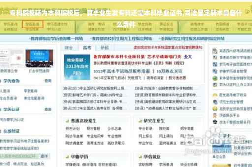 毕业后由学校统一颁发毕业证书,其毕业证书内容填写“在我校XX专业专科起点本科学习”,学习起止时间按升入本科实际时间填写。已录取进入本科学习的专升本学生不颁发高职高专毕业证书。学习期满且成绩合格的学生,可根据《中华人民共和国学位条例》及有关规定申请授予相应的学士学位。学生毕业时,按国家有关本科毕业生的就业政策执行。申请参加司法鉴定人职业资格考试,考核的,必须具备下列基本条件: