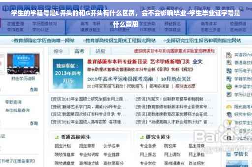 学籍号前面加G和L的区别:L开头的是临时学籍号码,而G开头的是正式学籍号码。都是一个字母加18位数字,不同的是G字开头的后面是身份证号;而L开头的是L+按身份证号编码规则生成的数字(6位学校所在地区划码+8位出生日期+4位随机码)。