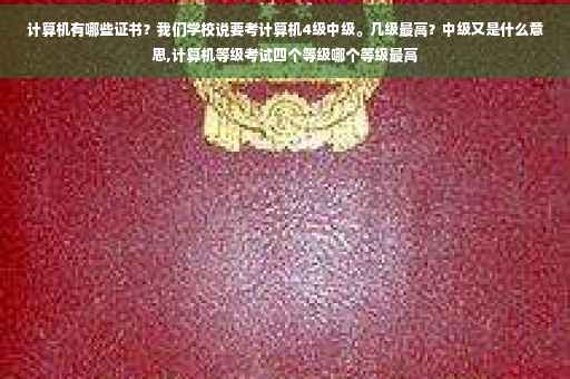 1。计算机等级考试,教育部旗下的考试,分1-4级。最高级是4级,对应的是计算机专业本科毕业的水平。考试分理论考试(笔试)和上机考试两部分,一般而言,笔试的应试准备比上机要轻松一点,上机考试有时还会受当时的情绪影响(紧张)。