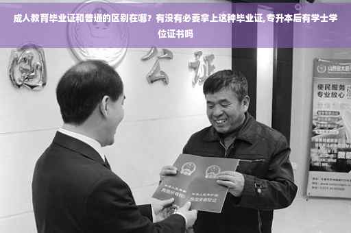 总之,成人教育毕业证和普通高校毕业证是有很大区别的。但也有很多相同点。如果手中只有高中或者中专学历。那么也是很有必要拿上成人教育学历的,起码来说不要让自己落后太多。