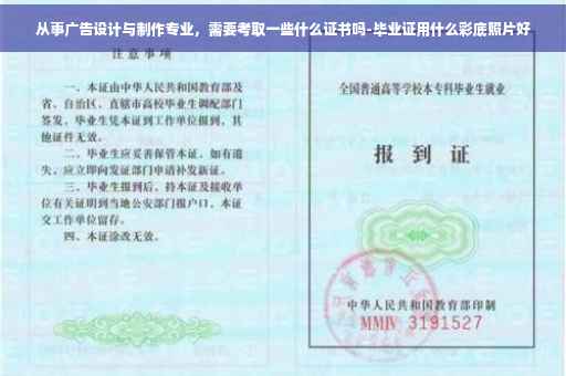 3、广告设计师——《国家劳动部职业资格证书》,劳动和社会保障部颁发,分级别。其他的证书也有,但是没有分量。其实说实话,对于我们做设计的来说,证书这个东西并不重要,大多数单位看重的是设计水平。因为基本上只要软件熟练就可以拿到证书,和设计水平没有关系。而实际工作中看的是设计水平,只要设计水平不错,要比有个证书重要的多。做设计的薪资和设计水平直接挂钩,与证书没有关系。当然啦,如果是刚毕业的学生最好拿个证书之类的,因为证书毕竟是应聘的“敲门砖”,毕竟在你们水平相当的情况下,还是选择有证书之类的。现在社会上很多拿证书的培训班,有些培训班交钱就可以拿到,不管你真是水平怎样,所以现在证书没有前几年那么好用了。好了,有不明白的随时问吧。总之一句话,好的设计水平是硬道理,证书有也可无也可,根据个人吧。最后祝你工作顺利、事业有成!:)