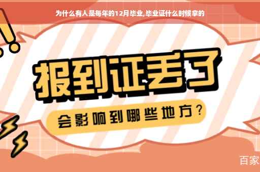 还有一种可能就是延期毕业,例如涉及到挂科补考、论文答辩不过关,需要等到学校补考合格、学分修够才会发放毕业证,这时毕业证的确可能是12月发放。一般高校毕业证是在每年6月和12月统一办理的。