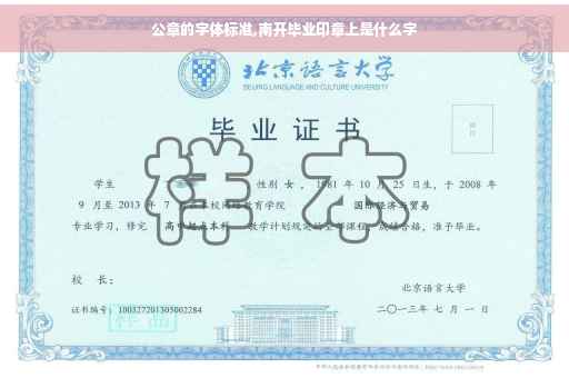 南开大学毕业印章上通常刻有“南开大学毕业证书专用章”字样,以及学校的校徽和校名。南开大学的校徽以“南”字为主形,巧妙地将“开”字融入其中,形成一体化的设计风格。