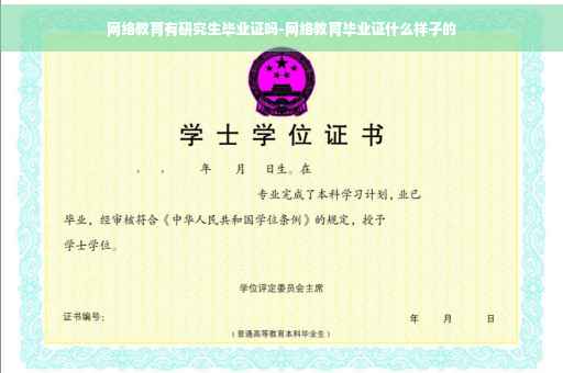 网络教育毕业证的样本大体上是以A4及A3纸张两种尺寸制作的,正面印制着学校的校徽、毕业生的姓名、专业、学号以及毕业日期等信息,背面印制着授予毕业学位的文字介绍,以及学校负责人的签名。