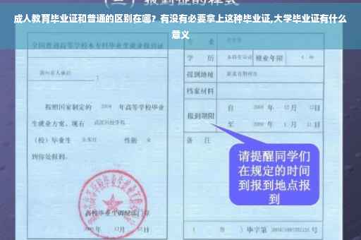 总之,成人教育毕业证和普通高校毕业证是有很大区别的。但也有很多相同点。如果手中只有高中或者中专学历。那么也是很有必要拿上成人教育学历的,起码来说不要让自己落后太多。