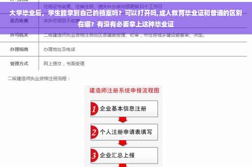 答:在大学毕业后,毕业生一般情况下不能拿到自己的档案,更不能打开了。高校毕业生档案管理,可通过县以上党委组织部门和政府人事部门所属机构进行保管。人事档案在个人手中保存或在无档案管理权单位保存的,应凭就业报到证先到当地政府人事部门所属人才服务机构补办有关手续,完善档案材料,然后再将档案移交到人才市场,及时办理人事代理和档案托管相关证明。