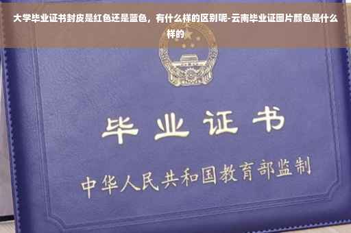 原来是红色的,从2005届起就改用蓝色了,并且和内心完全分离;毕业证内心也增强了防伪技术(主要是防止制假)。2000年以后的大学毕业证书都可以在中国高等学校学生信息网上查询真伪,封面和内芯完全分离,用什么颜色的封面对毕业证真假没有影响,关键是内芯,只要内芯是真的,在上述网站上查得到就行。封面都是中华人民共和国教育部监制的,并印有“中华人民共和国教育部监制”字样。; 本科三批(独立院校)和私立大学的,他们的毕业证封面是蓝色的。;