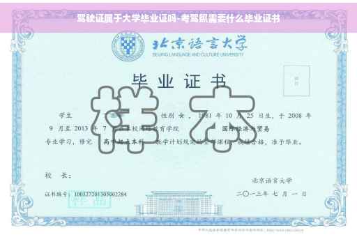 驾驶证不属于大学毕业证。中华人民共和国机动车驾驶证,简称驾驶证,又作“驾照”,是依照中华人民共和国法律而制定的机动车辆驾驶人员所必需申领的证照。在道路上驾驶民用机动车辆的人员,须依照《中华人民共和国机动车驾驶证管理办法》申请领取机动车驾驶证。机动车驾驶证全国有效。机动车驾驶证记载持证人的身份证件号码、姓名、性别、出生日期、长期住址、国籍、准驾(学)车型代号、初次领证日期、有效期和管理记录,并有发证机关印章、档案编号和持证人的照片。机动车驾驶证式样由公安部规定。