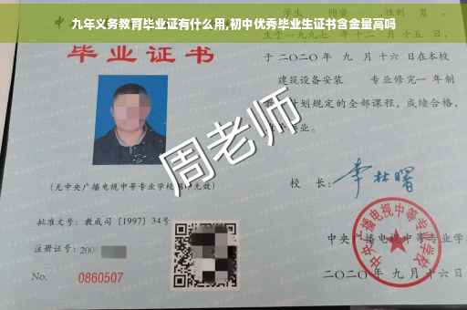 2、初中毕业后发放初中毕业证书;初中毕业证书代表了你接受了九年义务教育,脱离了文盲,这是国家的基本要求。