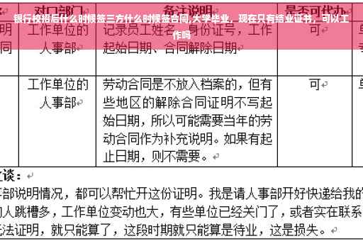 银行和学生双方达成就业意向就可以签订三方协议,毕业到银行正式办理入职手续时候,签订劳动合同,然后三方协议就自动作废。