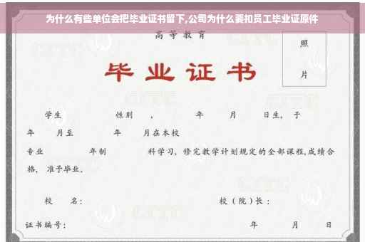 为什么很多公司都要扣毕业生的毕业证书,其实是因为单位害怕这些毕业生在单位刚刚学习到一些有用的本事了,就想辞职或者直接离职,如果下一家单位给的薪水高,情愿赔偿违约金也会走人的,而用人单位,花了很多心血和人力物力把人培养出来是要当人才用的,而不是要几个违约金,所以就扣留毕业证书,这样就可以或多或少的留下一部分人才了。