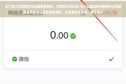 出门找工作应聘 毕业证当然要带 ,毕业证可以证明你的学历 ,现在很多单位招工 他都必须看你的原件 ,现在的年轻人 找份工作也不容易 ,各行各业都竞争的非常的激烈 ,现在每年的 大学 毕业生也是非常多的 ,这些孩子出来 都要去找工作 ,而工作岗位又是有限的 ,所以的正式 面对 应骋单位