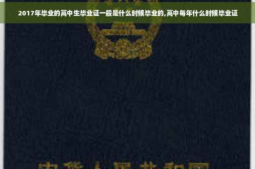 2017年的高中毕业证一般是高考前发,也就是2017年6月初高中毕业。这种安排主要是我们国家的普通高考衔接,国家普通高考一般安排在每年六月份的7、8、9三天,高中学校一般都会在学生高考前夕,安排学生毕业离校,去参加高考。也就是高考前高中学生就毕业了。