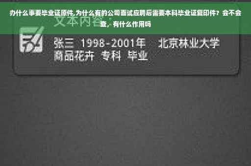 申请高新技术企业的公司,需要中高级人才达到一定的比例,员工毕业证即是证明资料之一。当你知道自己已经获得了这个职位,公司需要将你的本科毕业证复印件作为档案留底。