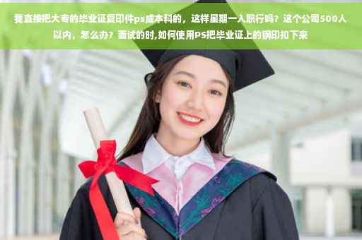 如果公司有人要查你就露馅了,毕竟学籍资料现在都是联网查询的,你PS你的大专毕业证,你们学校有本科吗?有就可以试试,没有的话还不如花钱去外面办个假的,大多数公司不会去查你的真伪,只要你的学校不是太出名,给他们个本科的印象但是又不深就可以了,这样或许会蒙混过关,后面你自己也不要提。