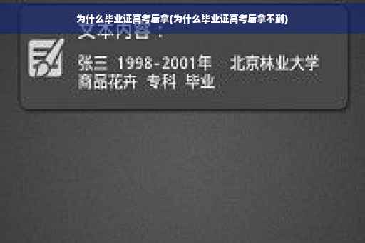 大家好,关于为什么毕业证高考后拿的问题,于是小编就整理了5个相关介绍为什么毕业证高考后拿的解答,让我们一起看看吧。