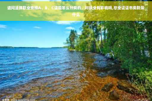 经国家司法考试成绩合格者,经省(市)司法行政机关法律职业资格申请初审通过,由司法部审核授予并颁发法律职业资格证书。法律职业资格证书分为三类: A类——具有本科以上学历,当年考试成绩达到公布的合格分数线以上的考生; B类——属于国家规定放宽学历条件地区,报名学历为法律专科,当年考试成绩达到公布的合格分数线以上的考生; C类——属于国家规定放宽学历条件地区,报名学历为法律专科,当年考试成绩达到公布的放宽地区合格分数线的考生。 根据司法部、最高人民法院、最高人民检察院有关规定,A类证书可在全国范围内从事法律职业; B类证书在取得本科以上学历后,可享受与A类证书同等的任职或执业范围; C类证书只能在放宽学历条件地区任职或从事法律职业。