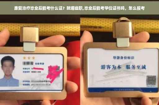 康复治疗专业学生毕业以后,在医院等医疗机构工作一年,可以通过医院等医疗机构途径报考康复治疗师证书。也就是上岗证。康复治疗师属于医学相关领域的专业技术人才,要求大学康复治疗专业专科以上(含大专)毕业,取得相应的高等教育毕业文凭,学历应为高中毕业后经过大学本专业的专科(三年制)学历教育;大学本科学历应为高中毕业后经过大学本科本专业(四年制)学历教育,取得理学士学位。不过,准入标准不同于职称考试,康复治疗师(士)资格考试每年一次,临床医学、康复医学及康复治疗专业的中专、大专、本科(要求工作一年)均可报考,具体办法见国家和当地卫生行政主管部门的规定。除高校之外,社会培训机构也有相关的培训课程,学历要求一般是中专以上。比如:康复保健师,分初级、中级和高级三个级别,初级要求报名者具有中专以上学历,或从事康复保健相关工作一年以上;中级要求大专以上学历,或从事康复相关工作三年以上;高级要求本科以上学历,或从事康复保健相关工作五年以上。