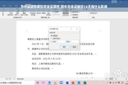因此,初中毕业证被扣10天会对个人的未来带来一定程度的影响,建议要及时弄清楚被扣证的原因,采取积极的措施加以解决。