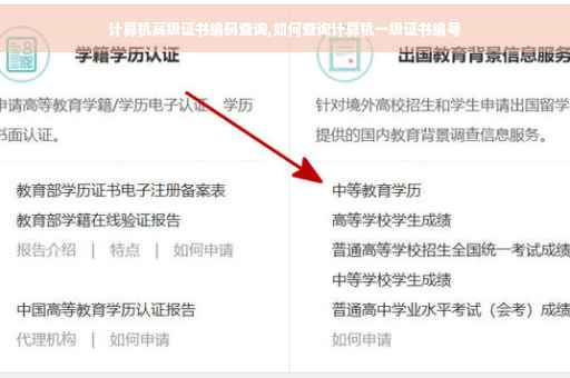 计算机一级证书编号查询方法如下:登录教育部考试中心中国教育考试网(http://www.neea.edu.cn)通过输入准考证号、姓名及身份证三项中的任意两项即可查询到成绩、证书等相关信息。