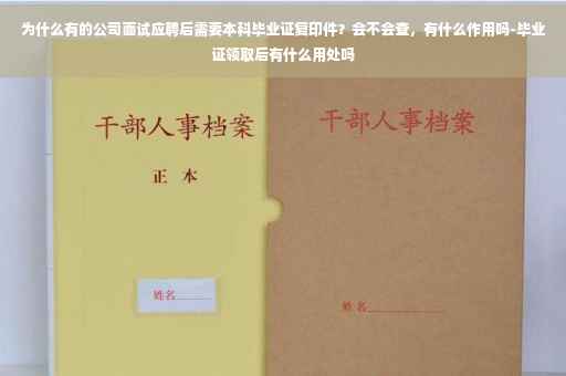申请高新技术企业的公司,需要中高级人才达到一定的比例,员工毕业证即是证明资料之一。当你知道自己已经获得了这个职位,公司需要将你的本科毕业证复印件作为档案留底。