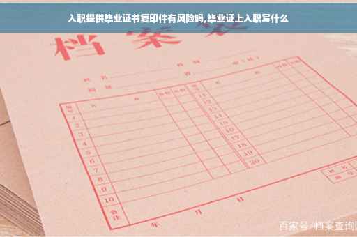 入职提供毕业证书复印件没有风险的,如果你实在不放心,你可以在毕业证复印件上面写上一行字:此复印件仅用于某公司入职资料,再次复印无效。不过本人认为,毕业证复印件在单位保管没什么风险的。既然你再单位入职了,应该对该单位的合法性经营也有初步了解了。