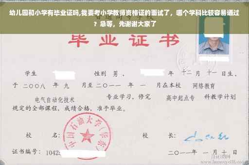 中小学和幼儿园教师资格考试包括幼儿园教师资格考试、小学教师资格考试、初级中学教师资格考试、高级中学教师资格考试。考试分笔试和面试,笔试各科成绩合格者,方可参加面试。面试通过结构化面试、情景模拟等方式进行。主要考核申请人的职业认知、心理素质、仪表仪态、言语表达、思维品质等教师基本素养和教学设计、教学实施、教学评价等教学基本技能。 面试科目 幼儿园教师资格考试面试不分科目 小学教师资格考试面试科目分为小学语文、小学英语、小学数学、小学社会、小学科学、小学音乐、小学体育、小学美术。 中学教师资格考试面试科目分为中学语文、中学数学、中学物理、中学化学、中学生物、中学历史、中学地理、中学思想品德(政治)、中学英语、中学音乐、中学美术、体育与健康、信息技术等学科。到此,以上就是小编对于小学毕业证考什么证书好的问题就介绍到这了,希望介绍关于小学毕业证考什么证书好的2点解答对大家有用。