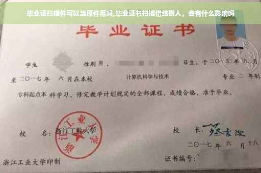 毕业证扫描借给他人,如果他人用你的毕业证从事不法的活动,那么有可能你毕业的院校会撤销你的毕业证书,所以不要将自己的毕业证书随意借给他人,可能会影响到你的个人名誉以及你毕业证的法律效力。毕业证书是个人有效的学历证明,私借他人从事不法活动,可能自己也要承担相应责任