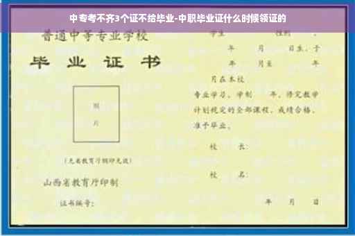 中专考不需要齐3个证才毕业。中专毕业证领证条件:在校两年,第三年实习,毕业证满三年即可拿到。不过在校学生没有完成教学及实习任务的,学校可以不予发放毕业证书。中专毕业证书是学生在中等专业学校完成相关课程学习,通过考试后,中等专业学校向学生颁发的中专毕业证书。